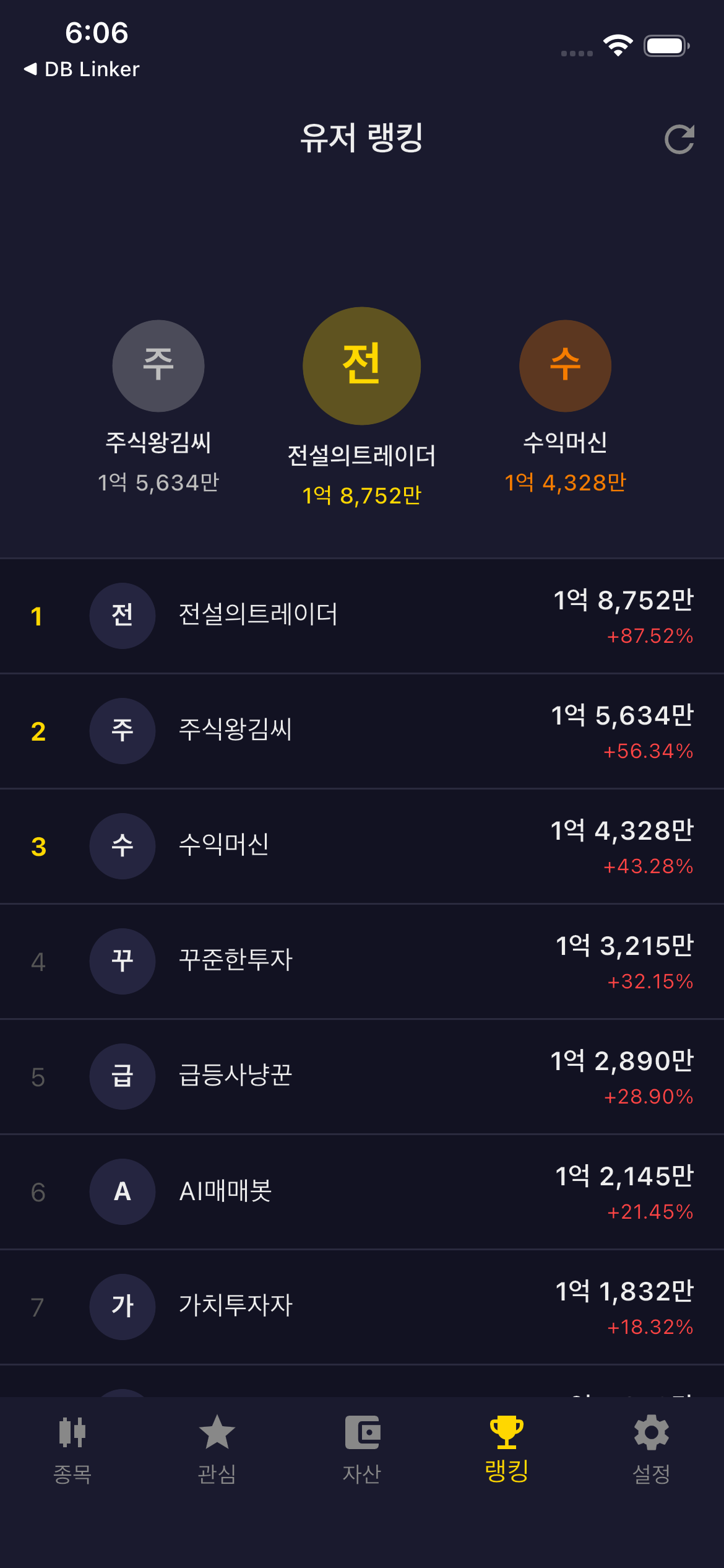 - 총 자산 기준 전체 사용자 순위